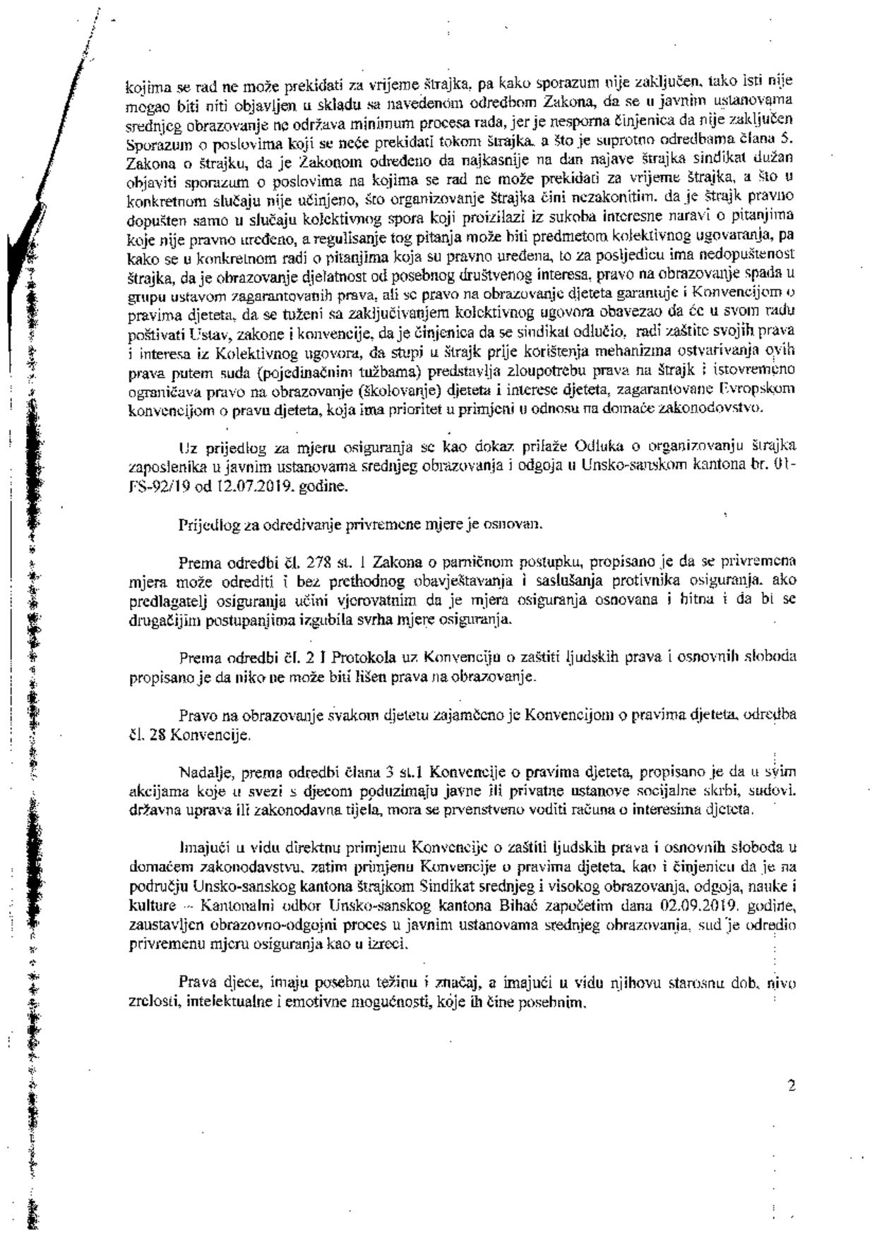 Napomena: Sindikalna organizacija JU Mješovita srednja škola “Bosanski Petrovac” će se isti dan izjasniti da li će nastaviti generalni štrajk ili će započeti nastavu.