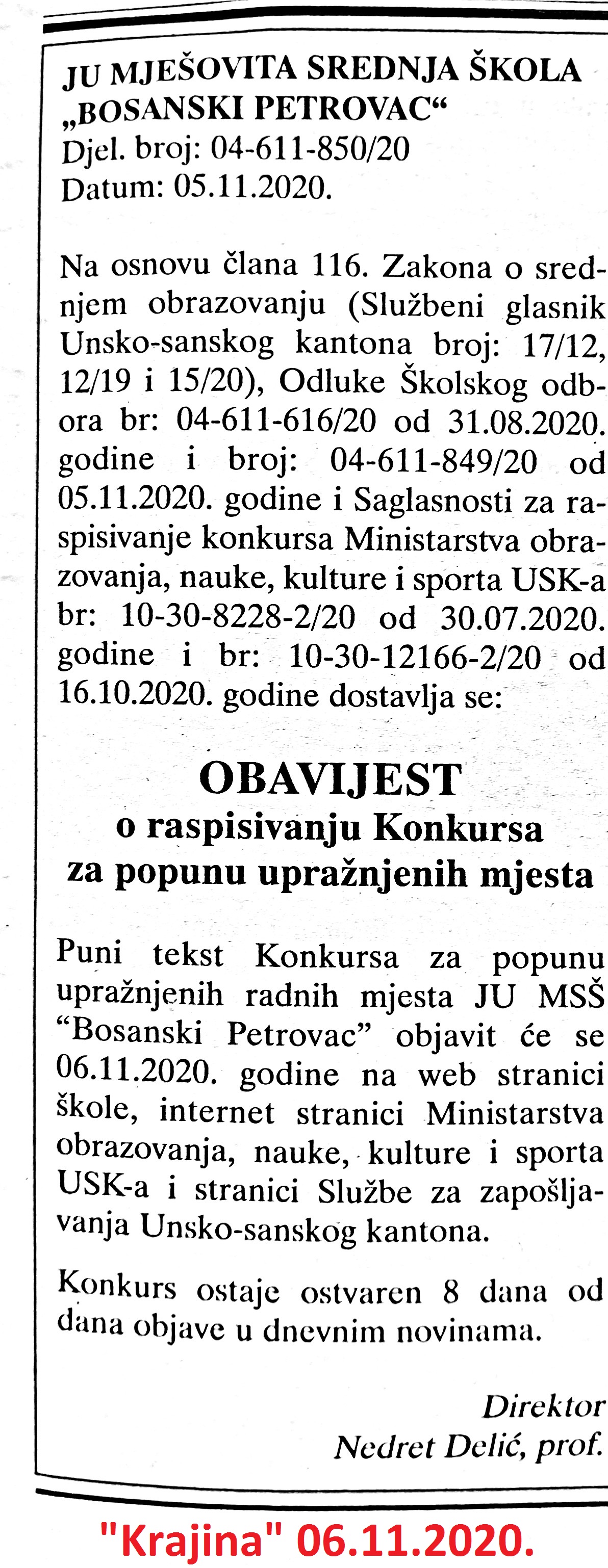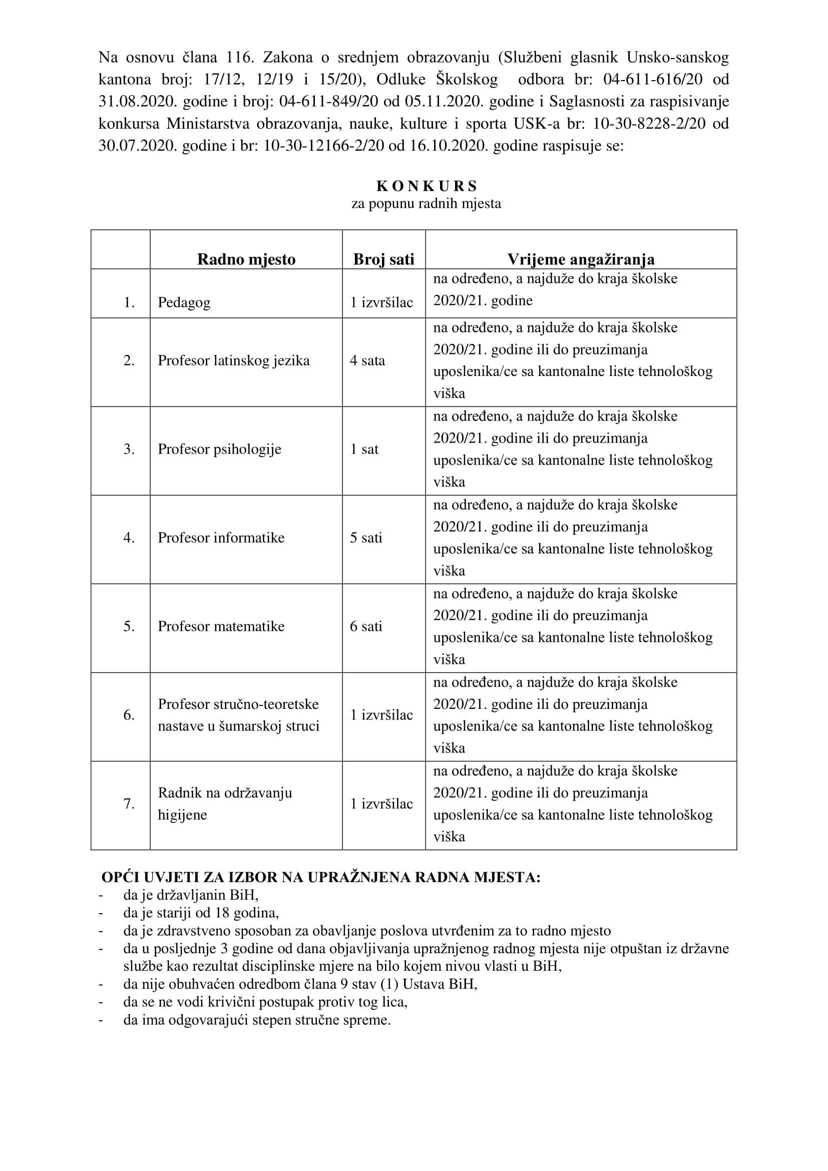 Konkurs za popunu radnih mjesta Posted on November 6, 2020 9:47 am by Nedret Comment 📂This entry was posted in Aktuelnosti
