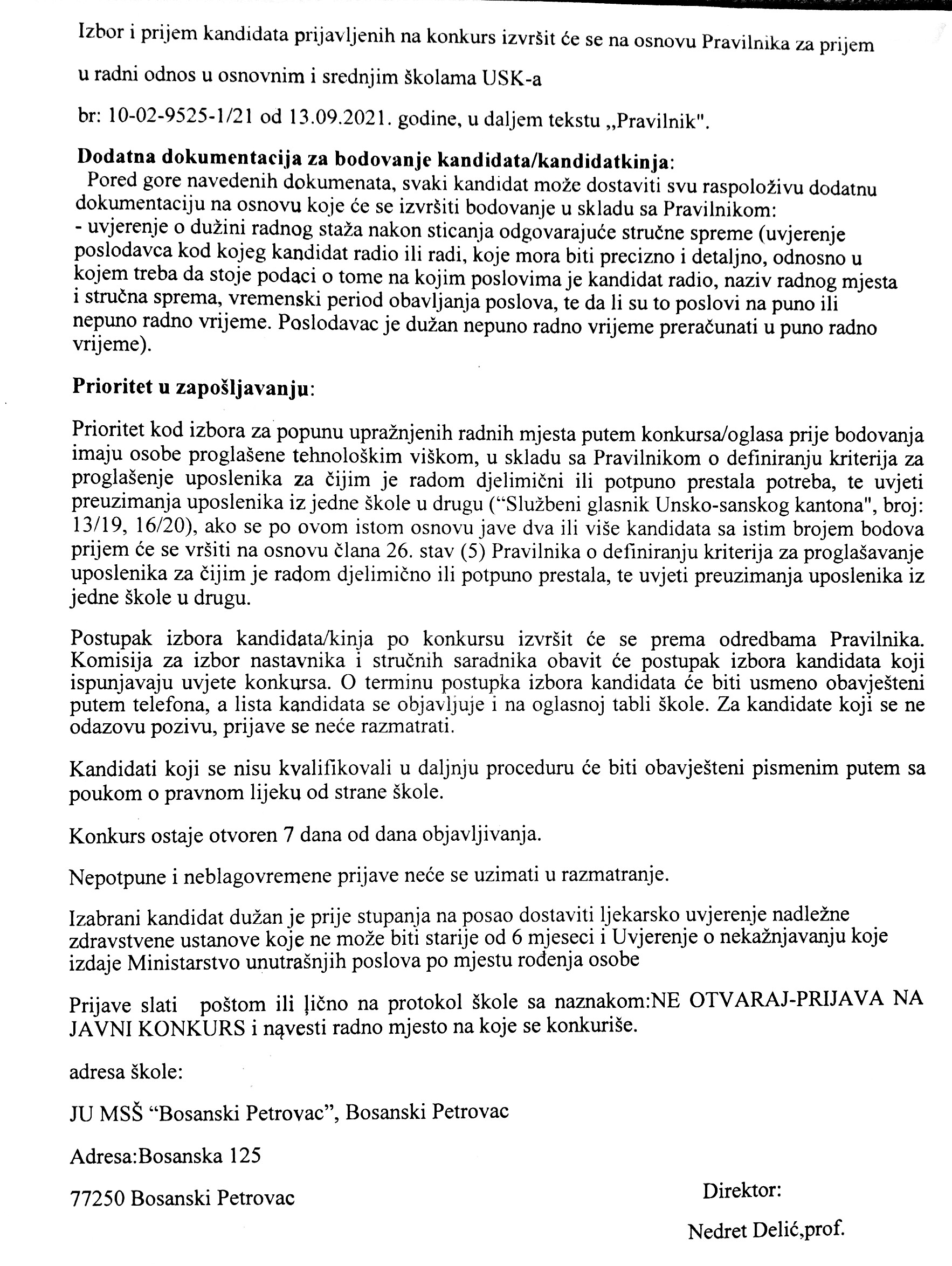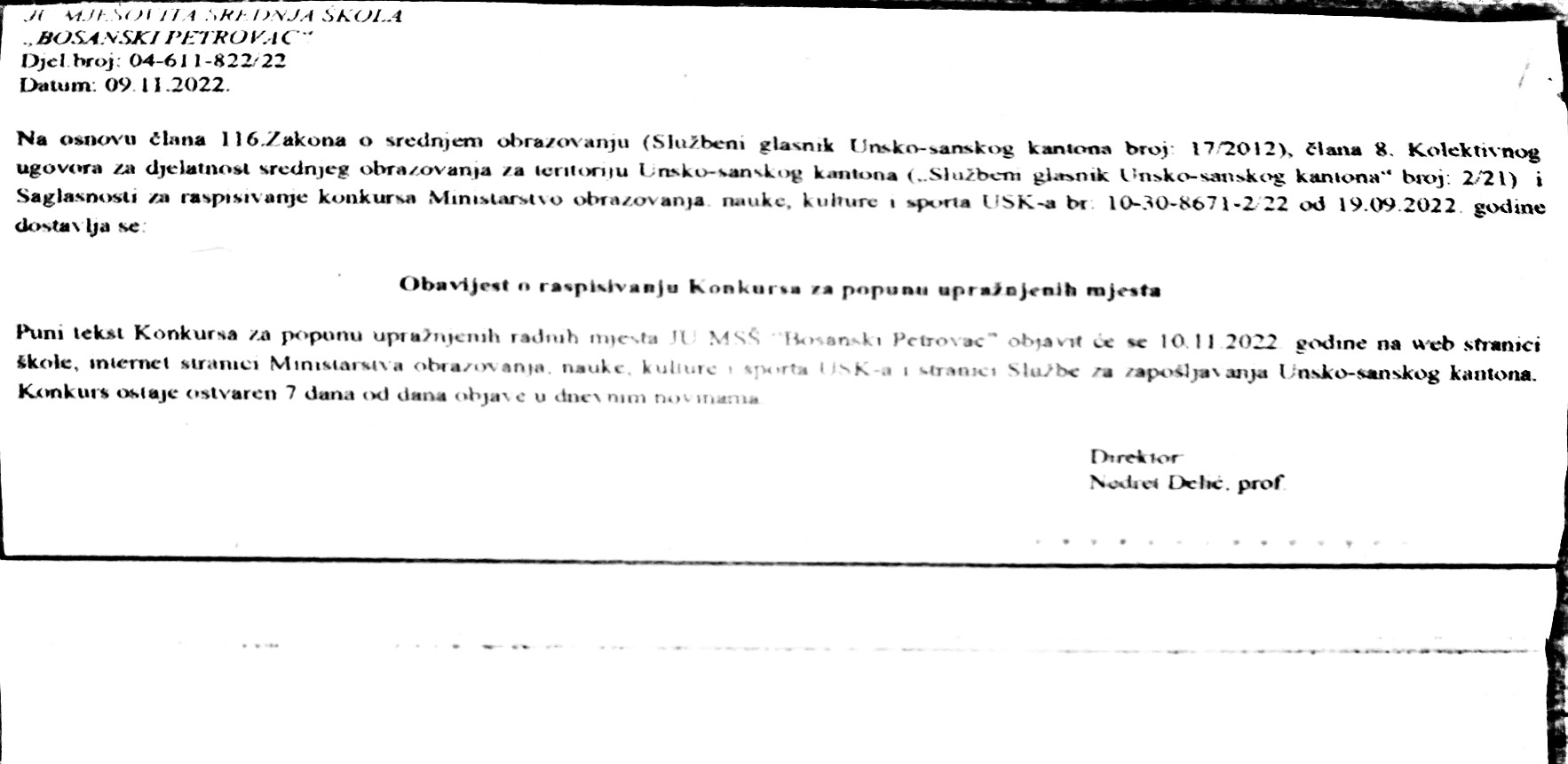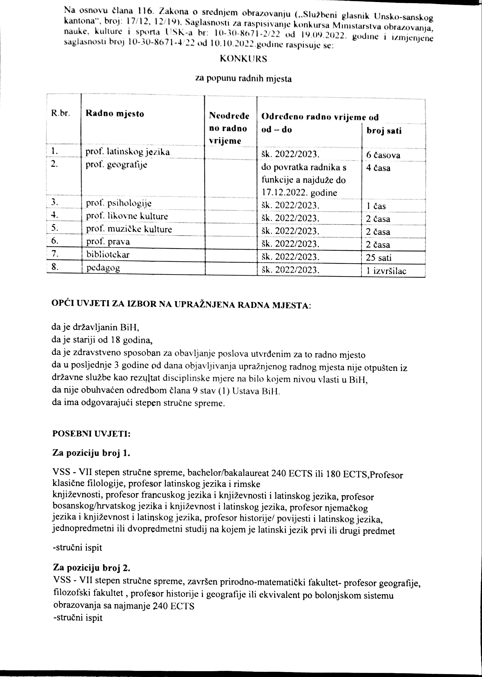 Konkurs za popunu upražnjenih radnih mjesta Posted on November 10, 2022 7:40 am by Nedret Comment 📂This entry was posted in Aktuelnosti