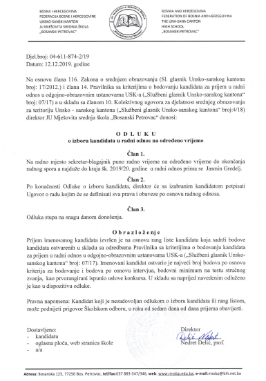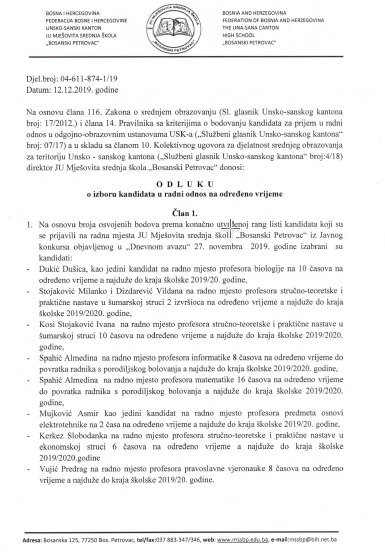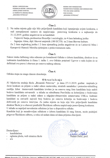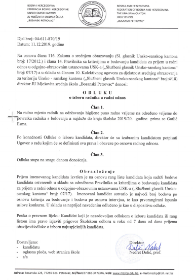 S posebnim zadovoljstvom obavještavamo Vas da je naša škola i ove godine postigla rezultat vrijedan pažnje i poštovanja. Na kantonalnom takmičenju u odbojci (Ž) i šahu za srednje škole koje je održano 11.03.2020. godine u Velikoj Kladuši naši učenici su postigli odličan uspjeh. Naime, učenik trečeg razreda šumarskih tehničara Belmin Salimović je osvojio 1. mjesto u šahu dok je naša škola osvojila 3. mjesto u ekipnom takmičenju. Našu školu u šahu su predstavljali: Belmin Salimović, Adan Zukančić, Tarik Družić i Aida Kamarić. Naše odbojkašice su osvojile 4. mjesto. Također, valja spomenuti i učenicu Tiganj Faju koja je na takmičenju iz islamske vjeronauke koje je održano 10.03.2020. godine osvojila 6. mjesto. Čestitamo još jednom našim učenicima i njihovim trenerima na postignutim rezultatima i želimo puno sreće u daljem radu.
