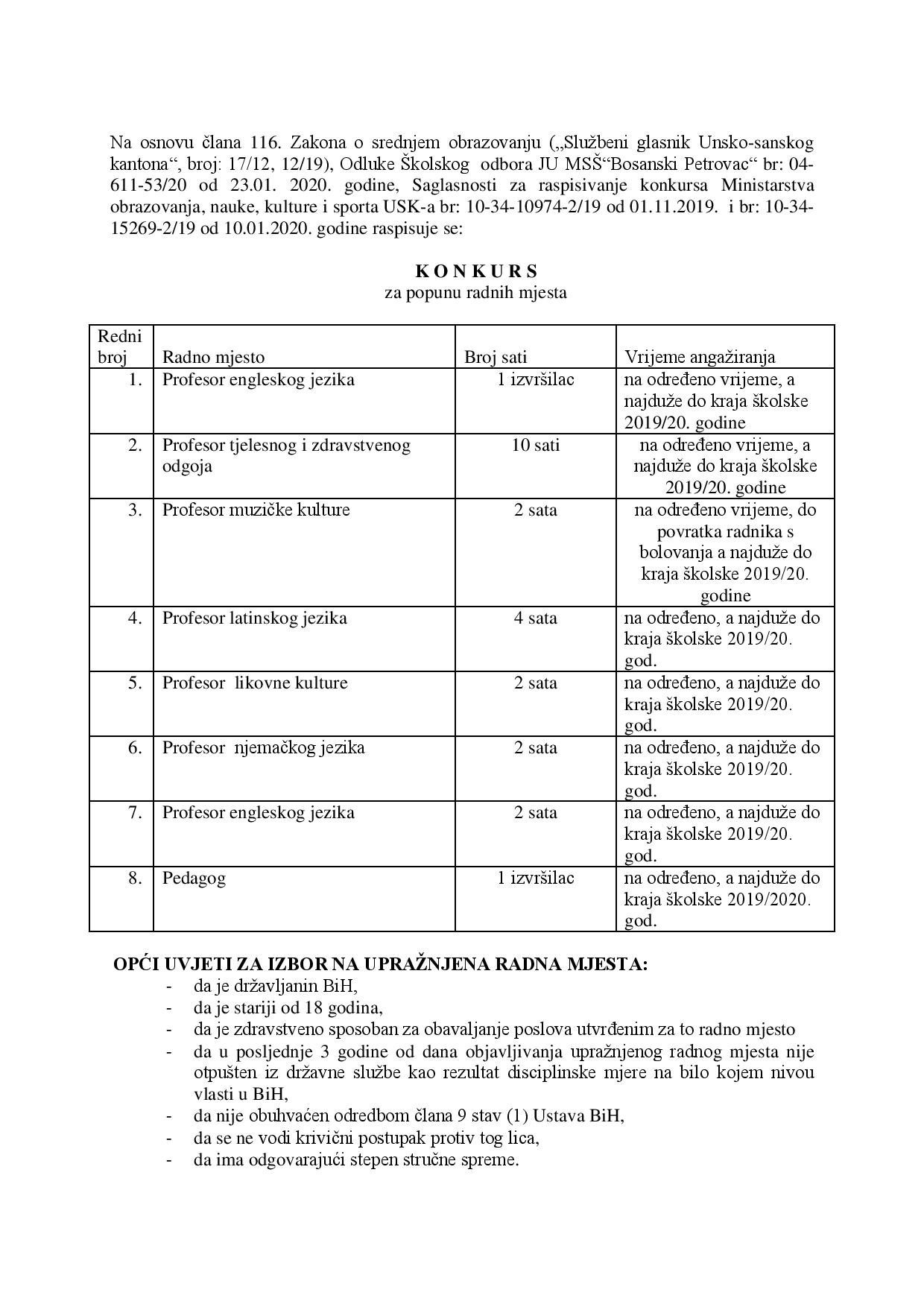 U organizaciji SS USK i društva pedagoga USK u sportskoj dvorani Luke u Bihaću i sportskoj dvorani u TŠC, dana 20.02.2020. godine održano je Kantonalno takmičenje u košarci Srednjih škola (Ž) kao i takmičenje u stolnom tenisu u JU „Medicinska škola“ Bihać. Od ukupno 8 ekipa koji su predstavnice svojih opština/gradova, učenice JU Mješovita srednja škola “Bosanski Petrovac” su u finalu pobjedile ekipu JU Medicinske škole Bihać i osvojile 1. mjesto na kantonu. Za JU Mješovita srednja škola “Bosanski Petrovac” nastupile su:Erna Velagić, Alma Redžić, Hana Zajkić, Emina Redžić, Adelisa Palić, Amela Nukić, Žana Didović, Lejla Redžić, Ivana Atlagić,Ajna Jaganjac, Aleksandra Novaković i Aida Kamarić.Također, našu školu su uspješno predstavili i u stolnom tenisu učenici: Anis Bašić, Boško Dragić, Anđela Branković, Milan Kecman i Dajana Grubiša. Nastavnik Mirza Mehdin kao voditelj ekipe imao je razloga za zadovoljstvo, a mi svi smo iznimno ponosni na naše učenice te im čestitamo na ostvarenim rezultatima.