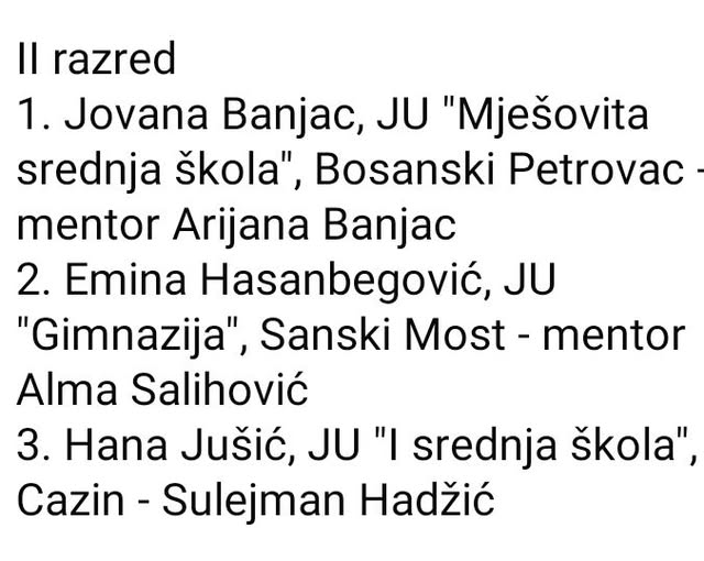 Jovana Banjac 1. mjesto iz Matematike za II razred