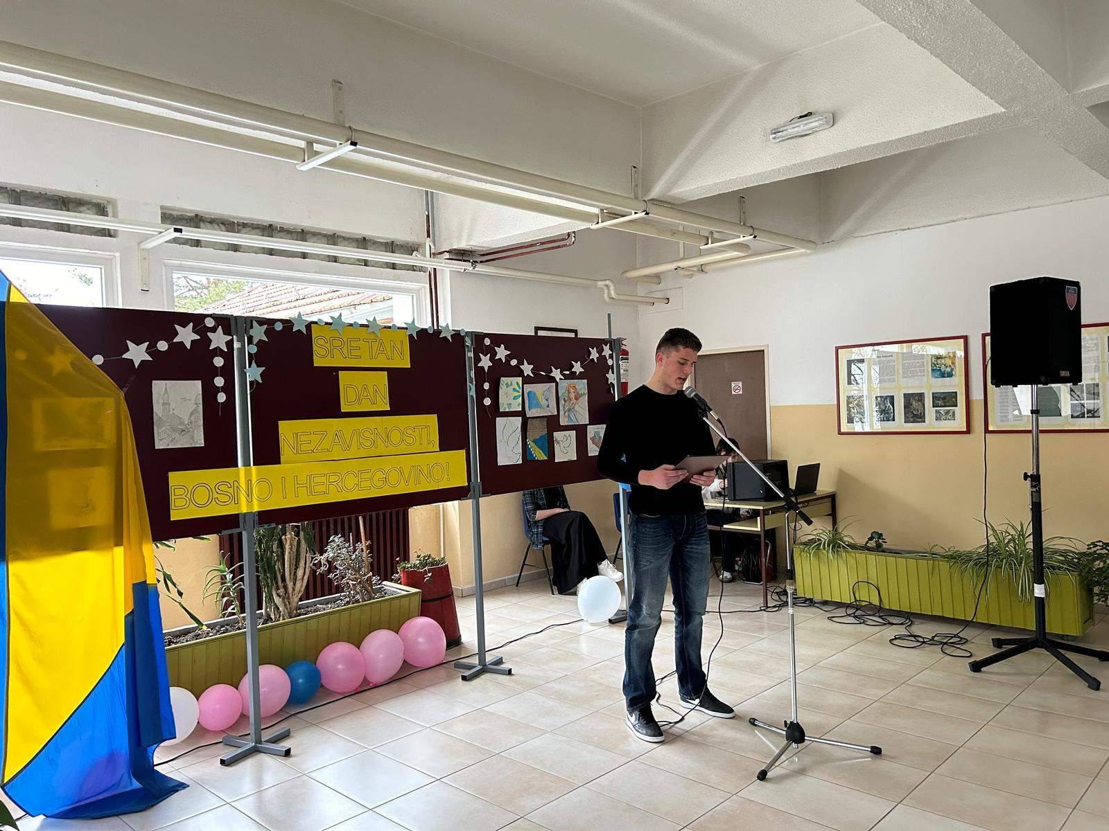 Povodom Dana nezavisnosti Bosne i Hercegovine održali smo prigodnu svečanost u holu škole. Program je počeo intoniranjem himne Bosne i Hercegovine i čitanjem prigodnog historijskog teksta o Danu nezavisnosti koji je pripremila prof. Šeherzada Draganović sa historijskom sekcijom škole.U nastavku programa prestavila se scenska sekcija sa recitalom ” Glas mladih” i Aldina Palić s pjesmom “Pjevat ćemo šta nam srce zna”. Učenike su pripremale profesorice Balić Gordana i Gudžević Mirsena.Učenici su nastupili i na svečanoj akademiji koju je organizovala Općina Bosanski Petrovac u Centru za kulturu i obrazovanje Bosanski Petrovac.Svim učenicima, njihovim roditeljima i svim građanima SRETAN DAN NEZAVISNOSTI BOSNE i HERCEGOVINE!