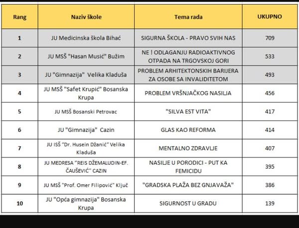 Škola je ponosna na naše učenike koji su nesebično izdvojili vrijeme, rad i trud da predstave sebe, školu i naš grad u najboljem svjetlu. Čestitamo učenicima i njihovim mentorima.