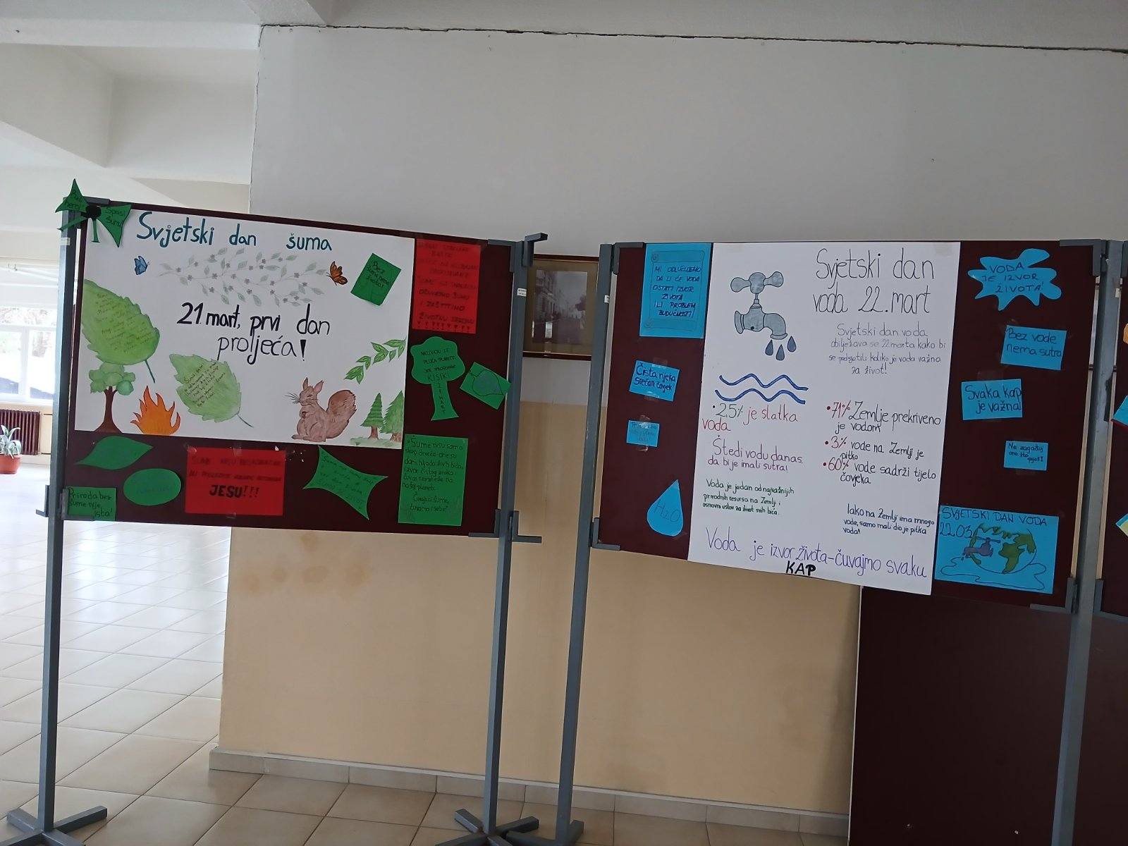 U školi su učenici I i IV razreda šumarskih tehničara sa profesoricom Ivanom Kosi Stojaković povodom Svjetskog dana šuma 21.3. i Svjetskog dana voda 22.3. uradili postere i postavili u holu škole.